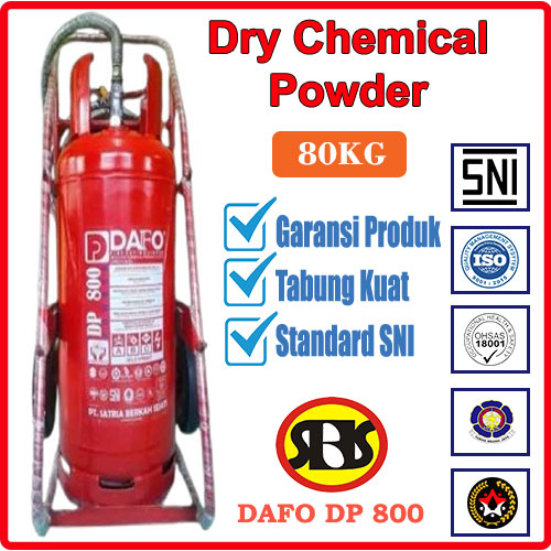 Dafo DP 800 Dry Chemical Powder Tabung APAR Pemadam Kebakaran 80 Kg telah tersertifikasi SNI, PMK, ISO 9001, OHSAS aman bisa anda gunakan sebagai alat pemadam kebakaran, baik di Rumah, Kantor, Gedung, Gudang dan di Perusahaan anda.